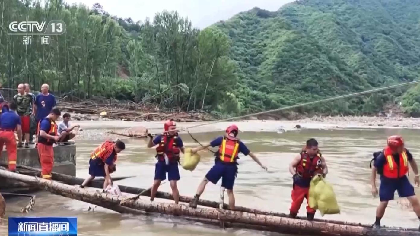 为了方便把受困人员转移出来配资交易宝,消防救援人员在断路处就地取材,用断木和绳索快速架起一座木桥。